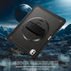 - 360-degree rotating stand provides optimal position for typing or viewing; thanks to the ergonomic and comfortable grip on the back, you can handle your tablet safely and safely with one hand