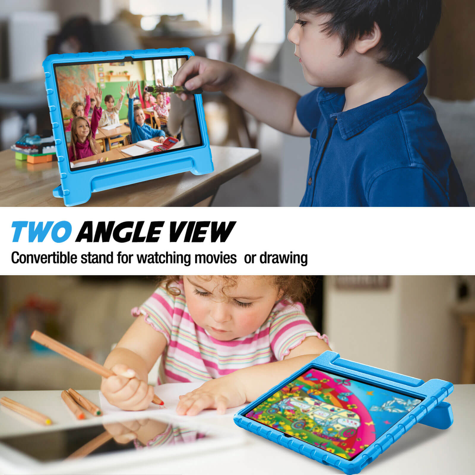 - Shockproof: Impact-resistant EVA foam material prevents the tablet from accidental drops, bumps or scratches; Corners feature double-thick silicone for best shockproof protection