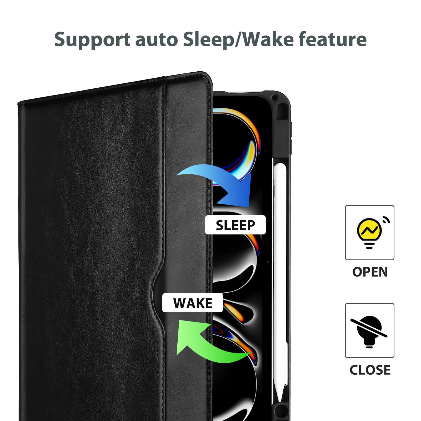 - Compatibility: Premium leather folio case for iPad Pro 11 Inch (5th Gen) 2025 M5 (Model number: A3357 A3358 A3359), 2024 M4(Model: A2836 A2837 A3006). Please check the back bottom of your iPad to find the model number "Axxxx".
